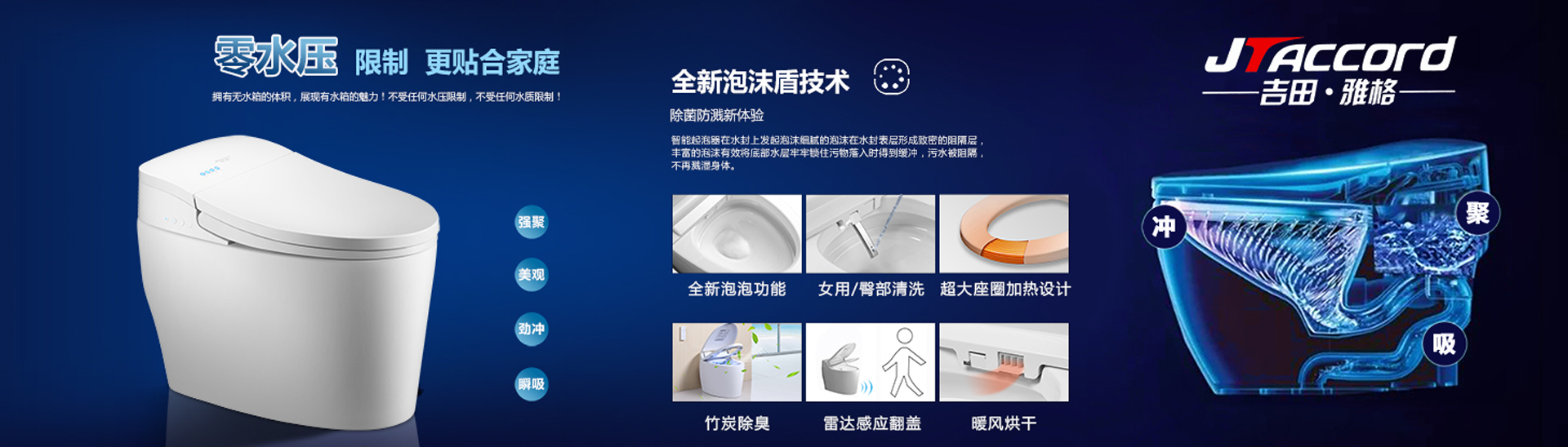 寧波吉田智能潔具科技有限公司是專業(yè)從事智能馬桶、智能便蓋研發(fā)、生產(chǎn)、銷售和服務(wù)于一體的國(guó)家高新技術(shù)企業(yè)。公司自成立2009年成立以來,本著高起點(diǎn)、高發(fā)展、創(chuàng)新化、人性化的理念,不懈追求科技進(jìn)步和質(zhì)量提升。